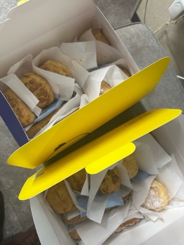 シュークリームの差し入れもいっぱいありがとう!パイ生地の細長いやつ食べるの初めてでした🫶めちゃうまでしたよ〜🎶アスティととっても合いました 感謝😭相変わらず目が合うと照れて目をそらすお兄様、愛おしいですね笑また大阪に来た時はいつでも待ってます!