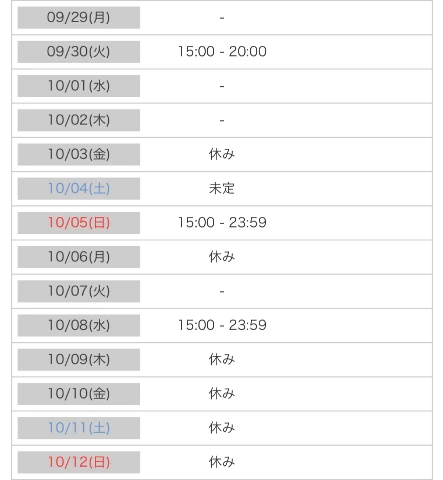 それと、10/3(金)20:00〜24:00追加してます!