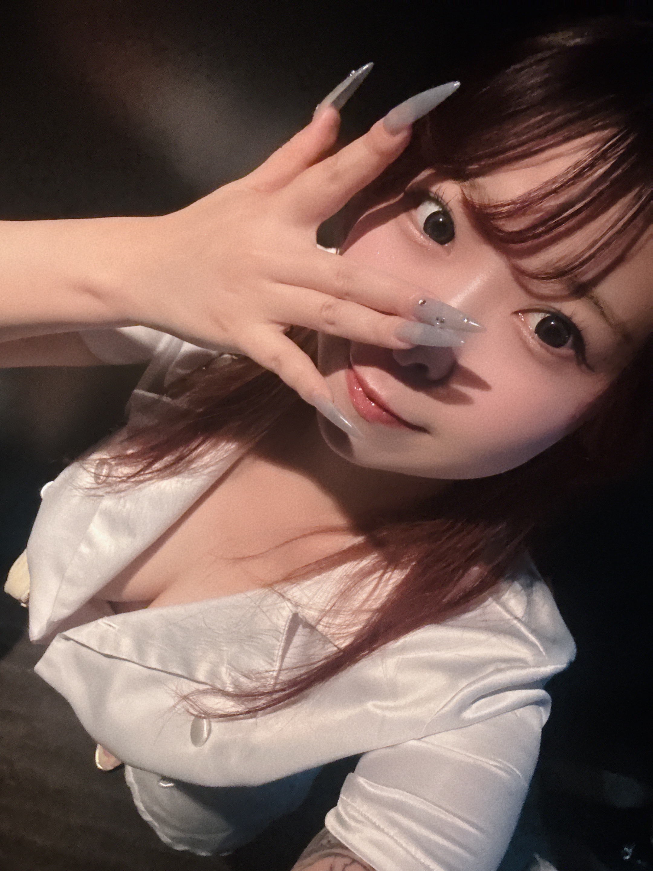 ボタン閉まんなくて胸元ゆるゆる( ◜𖥦◝ )