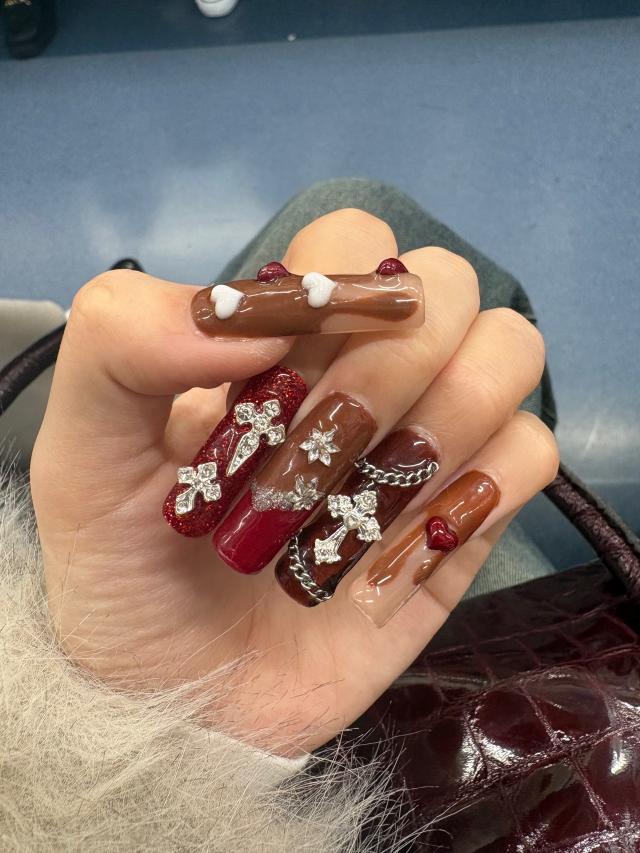 2月だからバレンタインネイルにしたよ~!!🍫♡