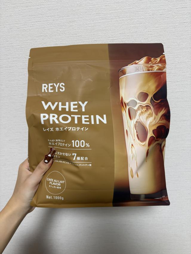 お尻を大きくしたいからソイからホエイプロテインに変えてみたんだけど、これ甘いカフェオレの味でめっちゃ美味しい☕️💖