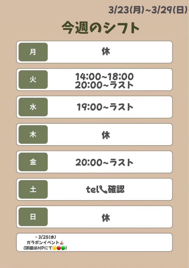 そんなるなの今週の出勤貼ります⭐️