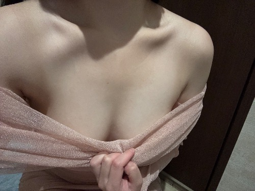 今日はピンクのオフショルワンピースを