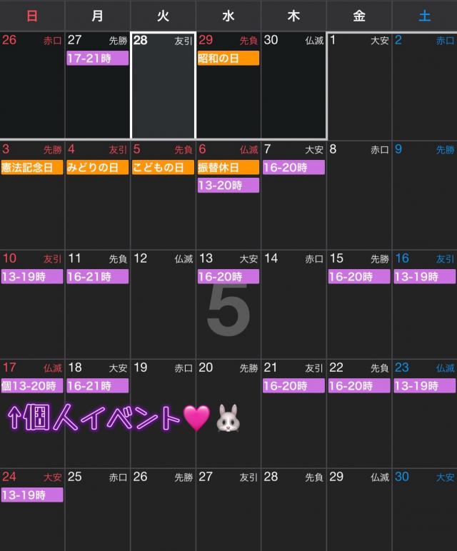 - こんにちは♡5月予定