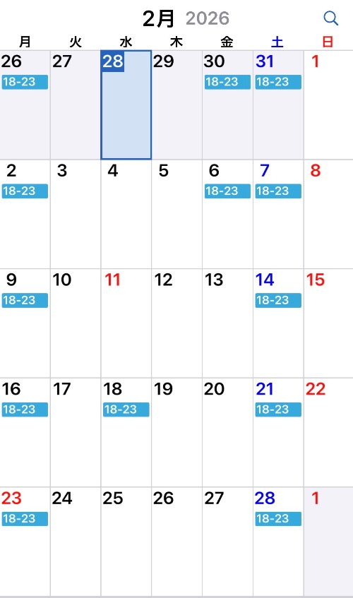 - 2月出勤予定