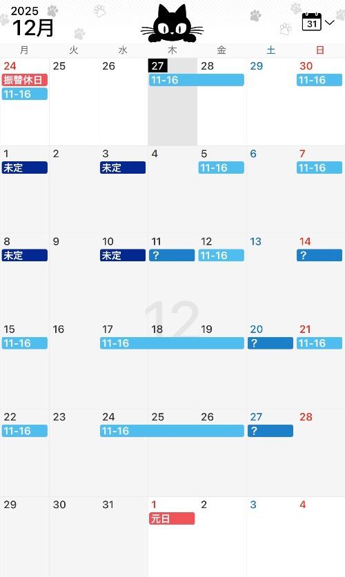 日記のカレンダーを更新します!ᝰ✍🏻𖤐