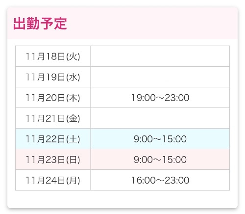 今後の出勤予定⟡.·*.···································
