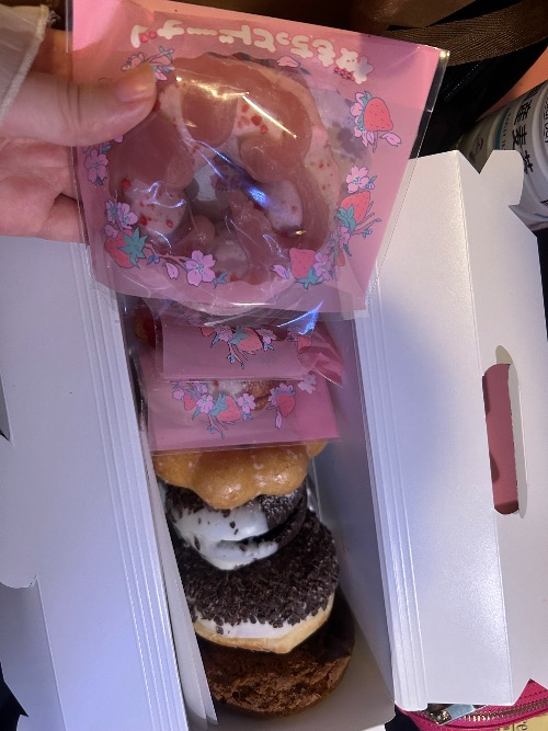 今回もいっぱい差し入れいただいて❕他の女の子やボーイさんの分までいただいたので過去最高の量いただきました👏🏻いちご12パック🍓に限定のミスド1箱🍩に有名なオムライス🥚にサンドイッチ🥪みんなびっくりしてました🤭