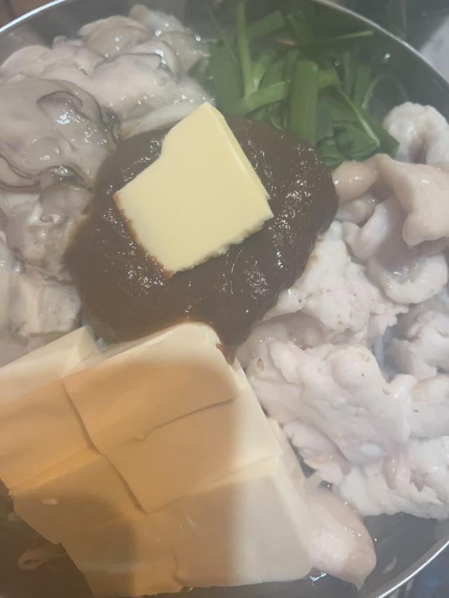 牡蠣モツバター鍋、かこさんと食べてまーす🙋♀️